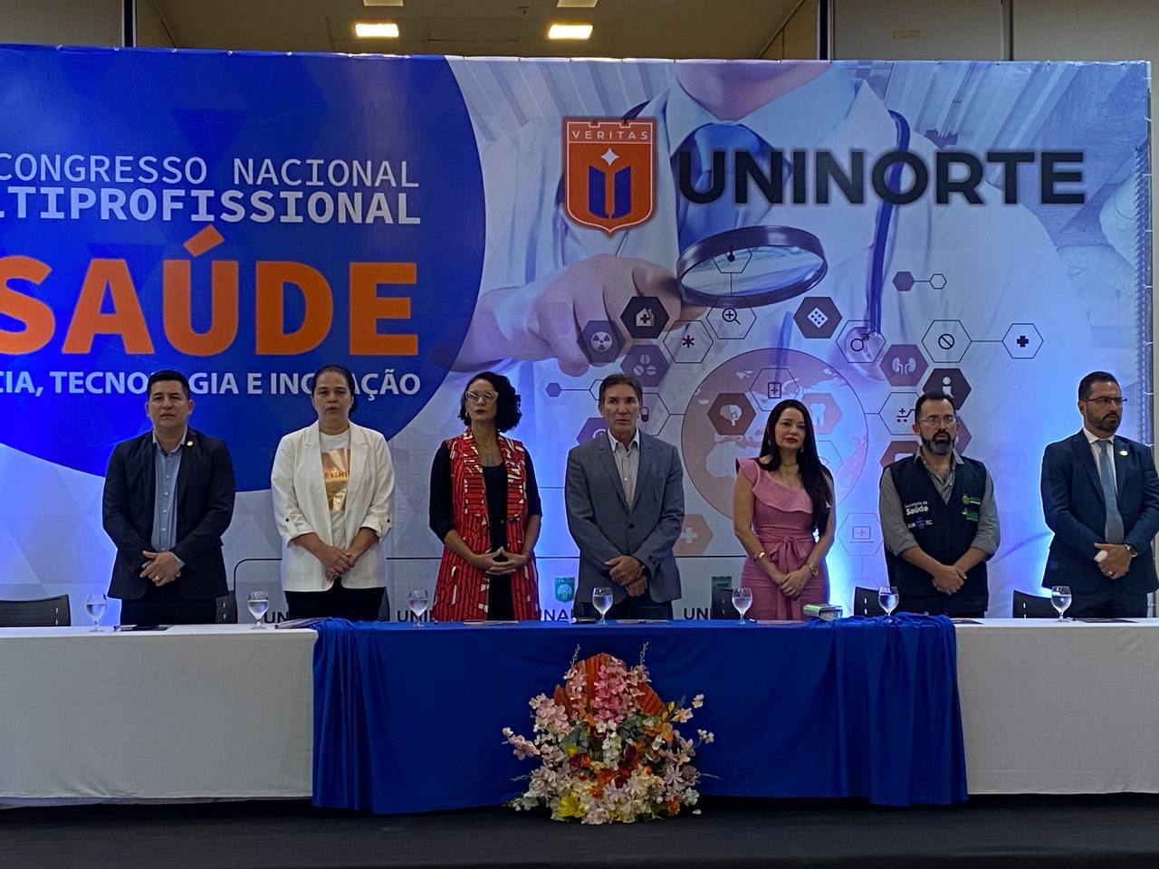 A mesa de abertura do Congresso foi presidida pela reitora da UNINORTE, Fabiane Almeida, e teve a presença do diretor do Núcleo de Eventos do grupo Ser Educacional, João Janguiê; da diretora da UNINORTE Centro e organizadora do evento, Ellen Gadelha; da diretora da UNINORTE Djalma Batista, Karen Ribeiro; e autoridades representantes das secretarias de saúde do Estado e Município.