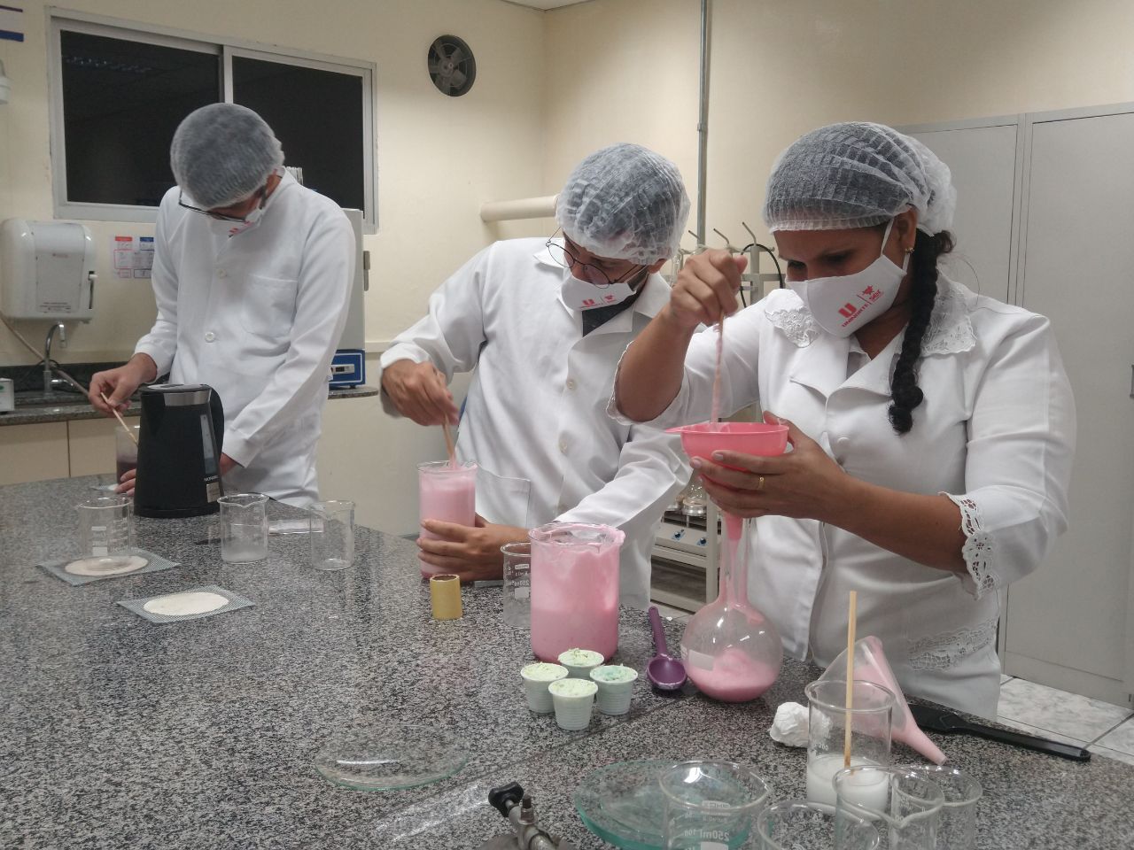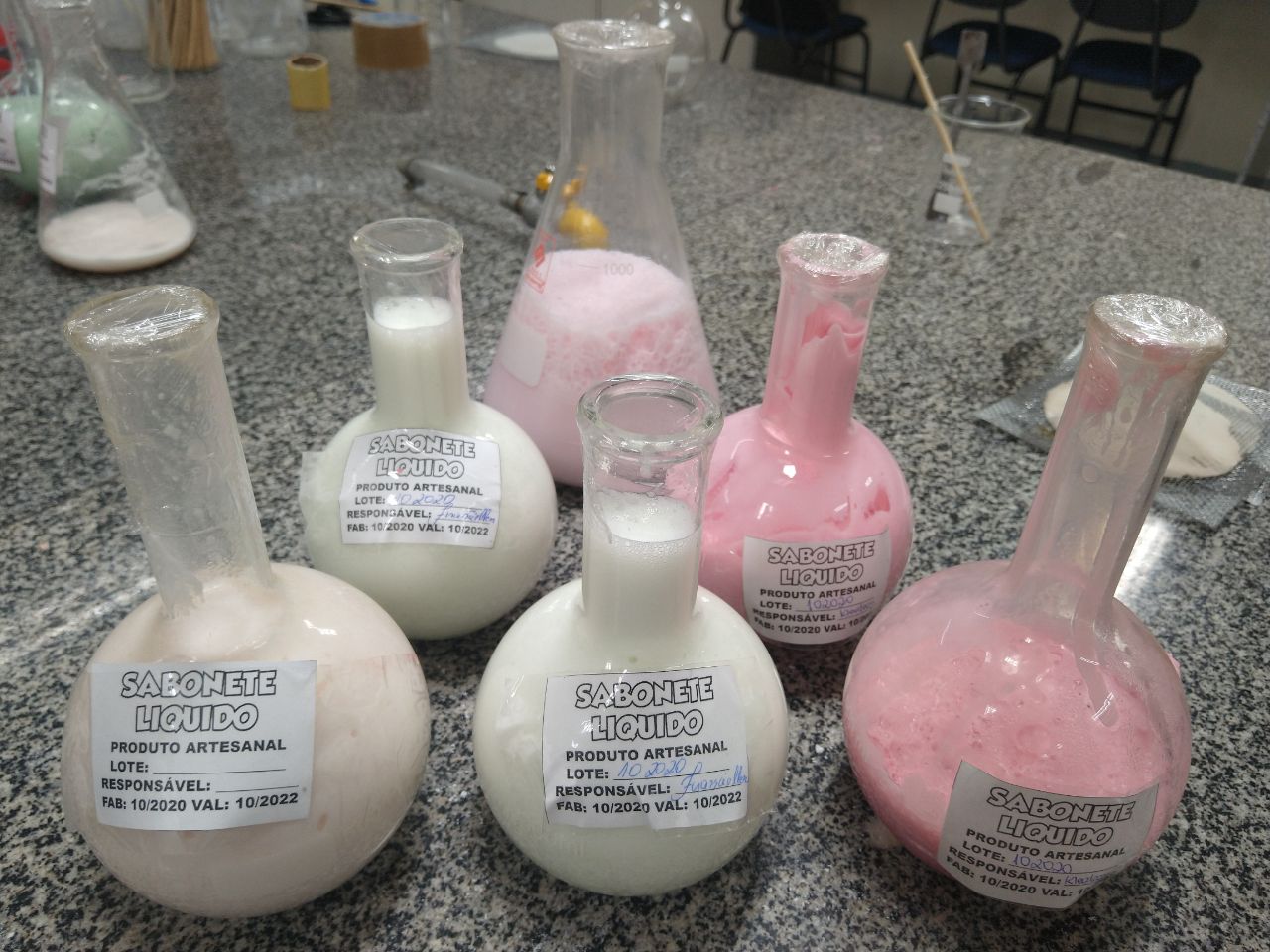 “Inicialmente, produziremos 200 litros de sabonete líquido e também queremos ampliar para a fabricação de pastilhas sanitárias e aromatizantes de ambientes. Todos esses produtos são domissaneantes, ou seja, destinadas à higienização, desinfecção ou desinfestação dos ambientes”, explica a docente.
