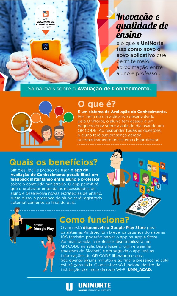 O aplicativo “Avaliação do Conhecimento UniNorte” possibilita aos alunos maior interação com o professor e os conteúdos ministrados em sala de aula. Por isso, não perca mais tempo! Baixe agora mesmo e fique por dentro das novidades.