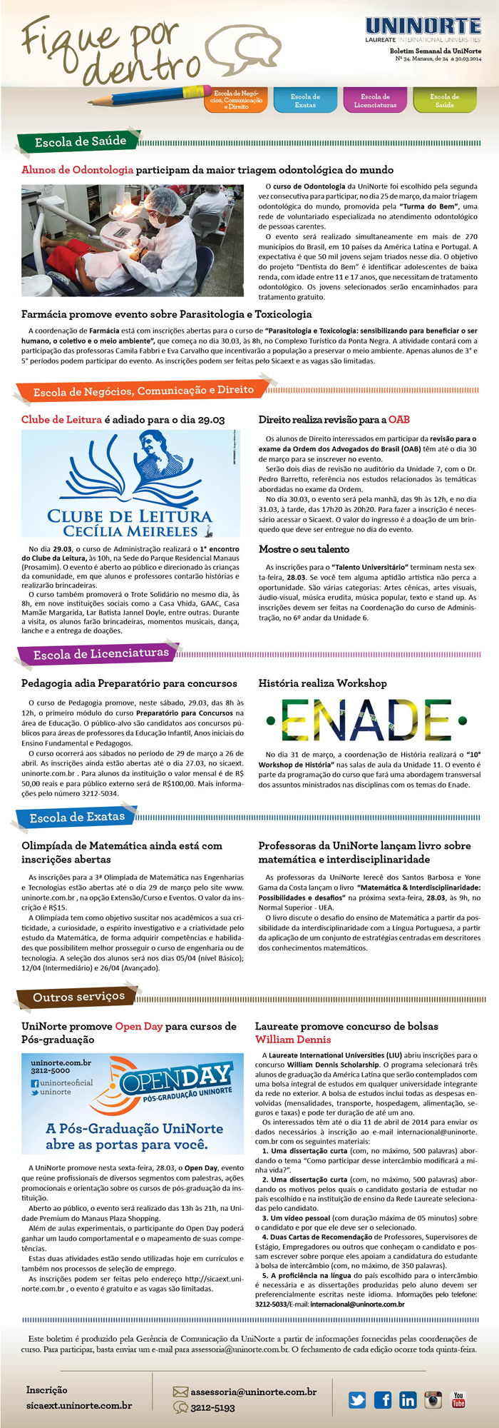 Sexta-feira, 28 de Março de 2014 às 16h16A UniNorte divulga a edição de número 34 do Boletim Fique Por Dentro.