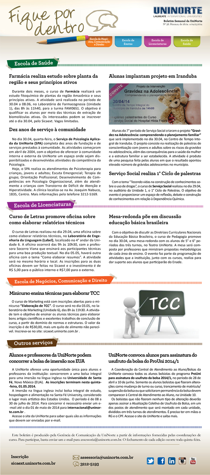 Quarta-feira, 30 de Abril de 2014 às 18h43A UniNorte divulga a edição de número 38 do Boletim Fique Por Dentro.