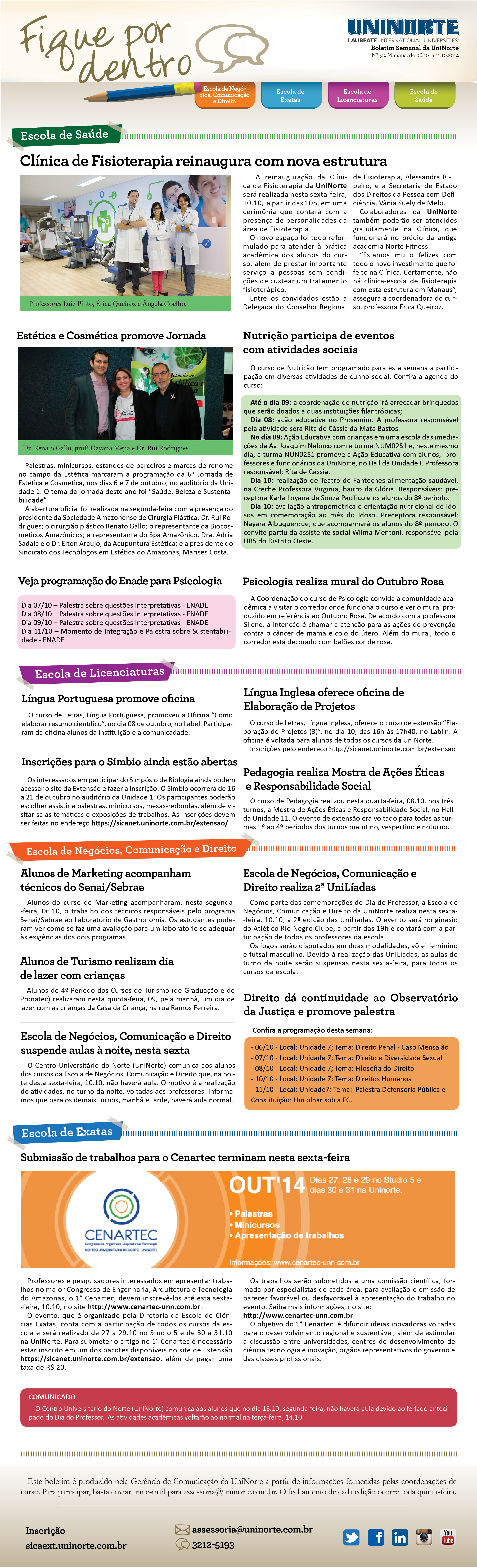 Confira a edição 52 do boletim Fique Por Dentro da UniNorte