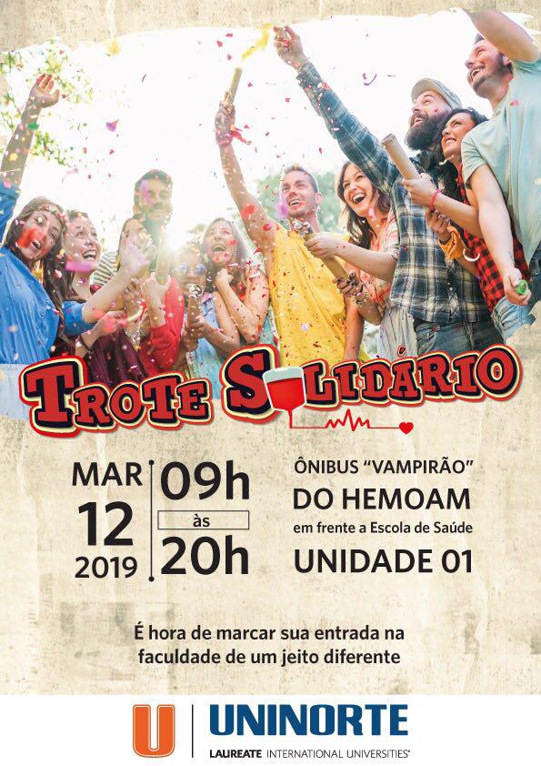A Fundação de Hematologia e Hemoterapia do Amazonas (Hemoam), em parceria com a UniNorte, disponibilizará uma unidade móvel para realizar coleta de sangue dia 12 de março, das 9h às 20h, em frente à unidade 1. O objetivo é alcançar o maior número possível de bolsas para fortalecer o estoque das unidades de saúde e suprir a alta demanda.