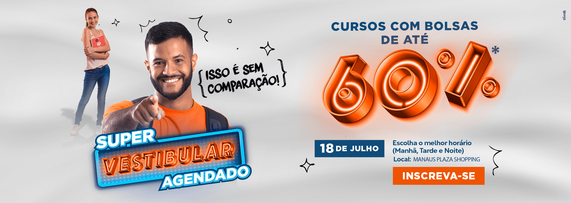 Fazer a prova no horário que escolher, ter a chance de ganhar uma bolsa de até 60% de desconto no curso todo, e ainda fazer matrícula na hora, o que é isso? Isso é o Super Vestibular Agendado UniNorte!