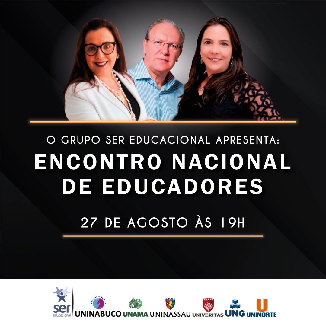O novo cenário da educação diante da pandemia de Covid-19 será o tema do I Encontro Nacional de Educadores. O evento, promovido pelo grupo Ser Educacional, mantenedor das marcas UNINASSAU, UNAMA, UNG, UniNorte, UNIVERITAS e UNINABUCO, acontece nesta quinta-feira (27), a partir das 19h, e será 100% on-line.