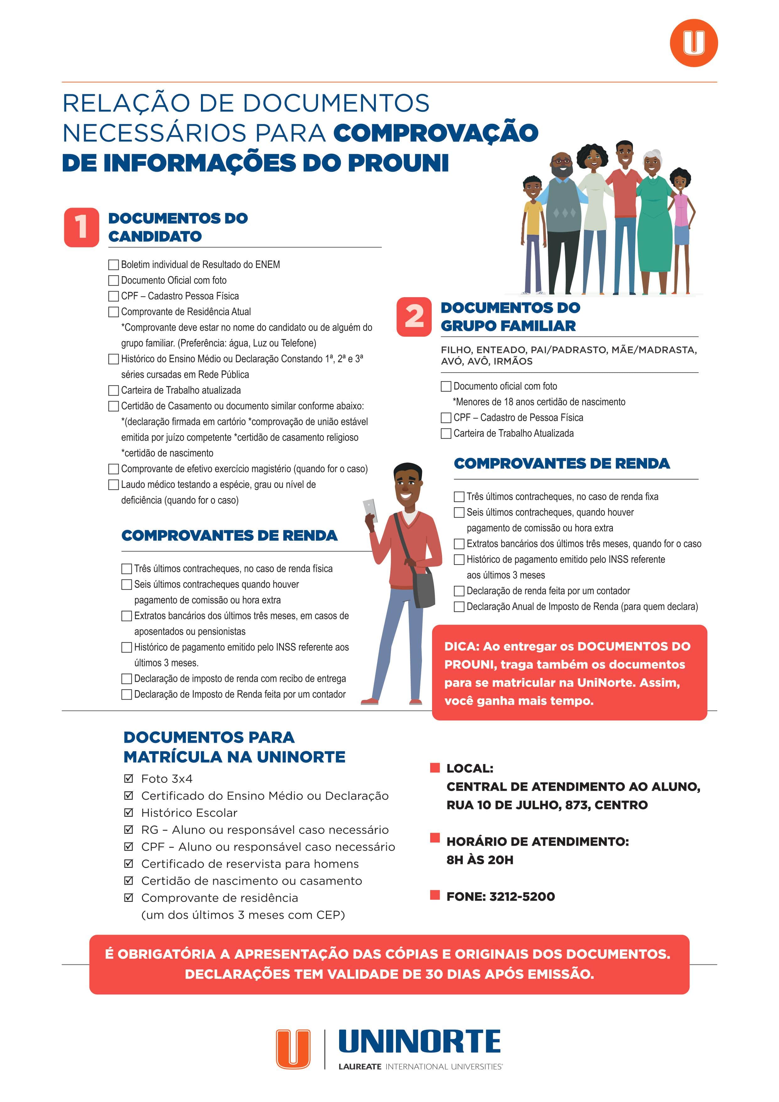 Para os aprovados na UniNorte, a documentação deve ser entregue na Central de Atendimento ao Aluno, na Rua 10 de julho, 873 – Centro.