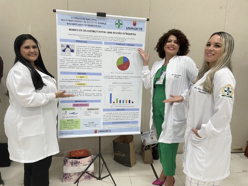 As concluintes do curso de Biomedicina, Claudia Bonavoglia, Diene de Assunção e Rute Farias, apresentaram uma pesquisa sobre os benefícios da Ozonioterapia, tratamento alternativo que vem ganhando destaque nos últimos anos. “É uma experiência prazerosa falar sobre o tema para um público tão grande. Não imaginávamos que um dia apresentaríamos nosso trabalho em um congresso, isso traz um enriquecimento para nós que estamos nos formando agora”, afirmou Claudia.