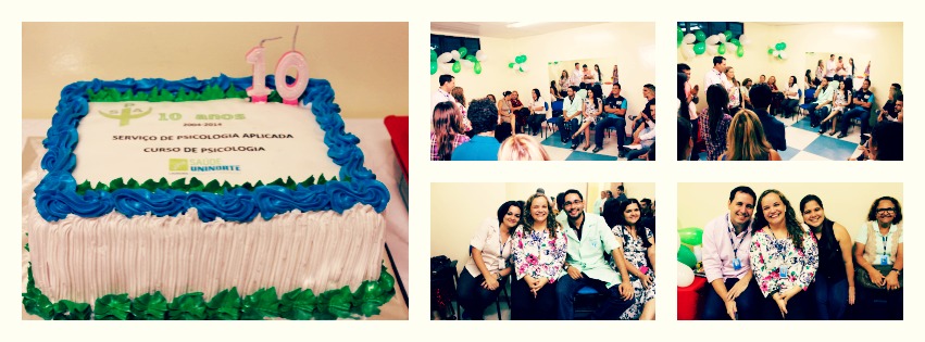 O curso de Psicologia da UniNorte comemorou no dia 30 de abril 10 anos de atividades e prestação de serviços à comunidade do Serviço de Psicologia Aplicada (SPA). Em abril de 2004 nascia esse que hoje é um espaço onde tanto os acadêmicos como a comunidade que vive na região podem usufruir de atividades e serviços de competência da Psicologia.