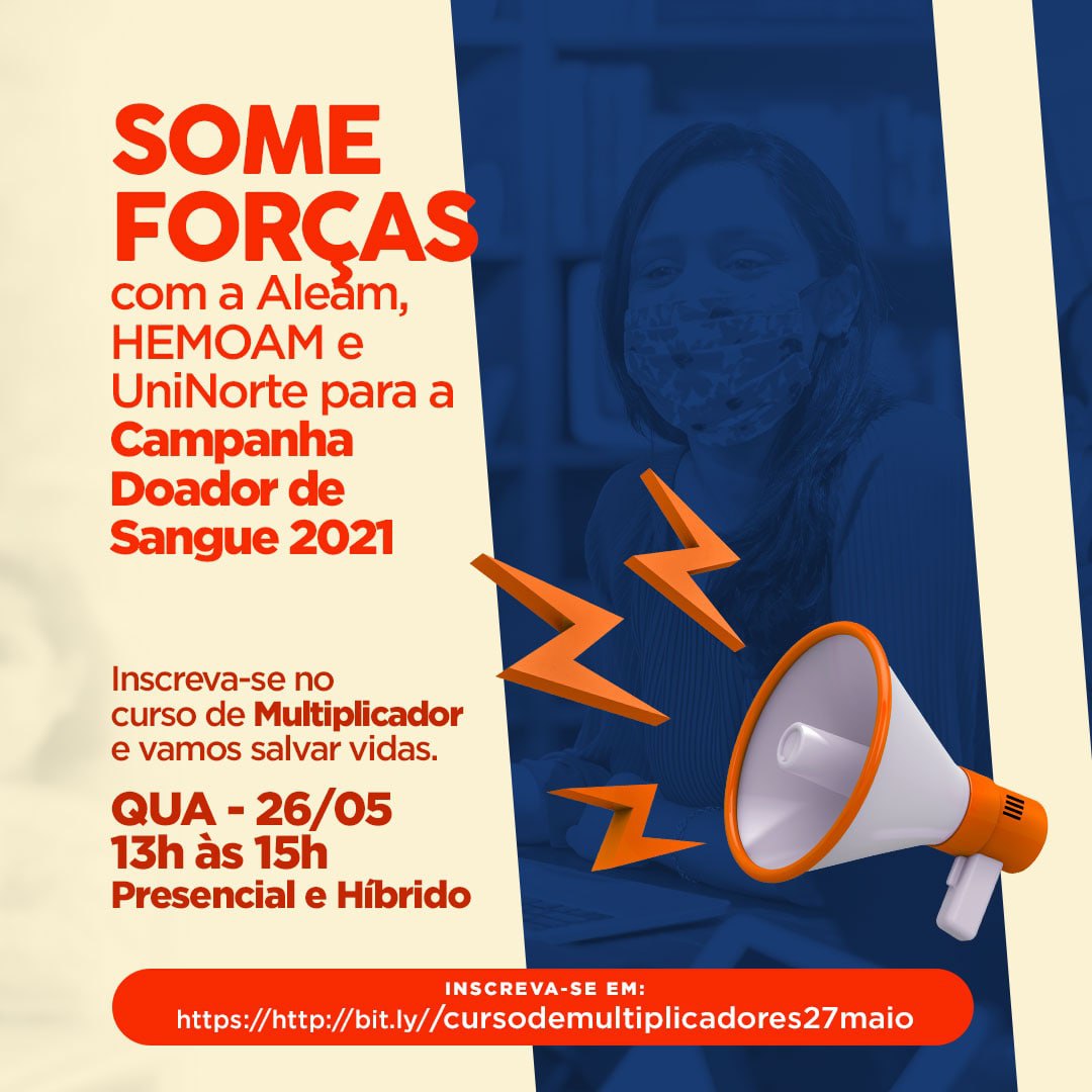 O curso será presencial, na sede da Aleam, e com transmissão on-line. As inscrições devem ser feitas por meio do link http://bit.ly/cursodemultiplicadores27maio. O treinamento será realizado pelos profissionais do Hemoam, que vão orientar os participantes sobre como funciona a doação de sangue e como pode ser feita a sensibilização do público em relação ao tema.