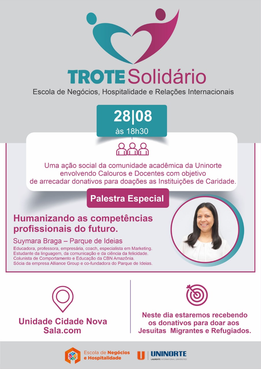 Participe do Trote Solidário da Escola de Negócios, Hospitalidade e Relações Internacionais