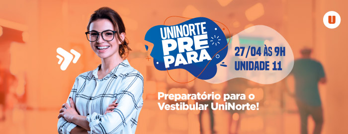 Quer ter mais chances de ganhar uma das 400 bolsas do vestibular? Participe do UniNorte Prepara dia 27.04 e receba dicas de matemática, português e redação. Inscreva-se aqui!