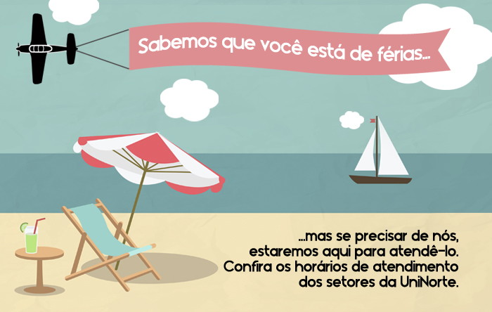 O Centro Universitário do Norte (UniNorte) informa os horários de funcionamento da instituição no período de férias. Confira.