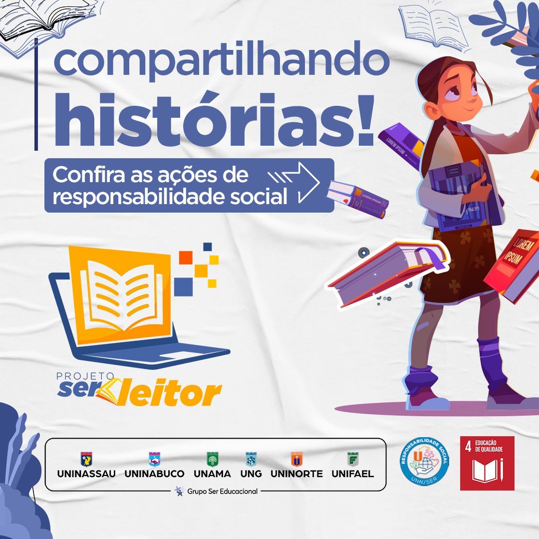 Os interessados em participar devem se inscrever por meio do link. O projeto Ser Leitor faz parte do calendário de Responsabilidade Social do grupo Ser Educacional, mantenedor da UNINORTE.