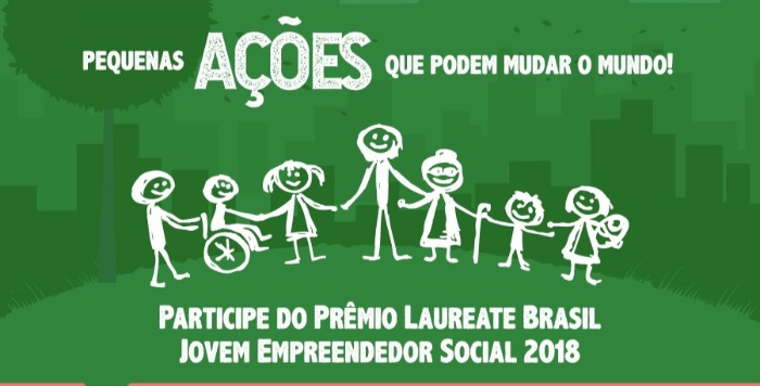 Sexta-feira, 18 de Maio de 2018 às 10h23As inscrições para o Prêmio Laureate Brasil estão chegando ao fim, quem tem interesse em participar tem até o dia 30.05 para se inscrever. O objetivo do prêmio é dar reconhecimento a jovens empreendedores sociais que promovem mudanças significativas nas comunidades onde atuam. O prêmio integra o YouthActionNet:registered:, uma ação global criada em 2001 pela International Youth Foundation, a qual a Laureate International Universities é parceira.