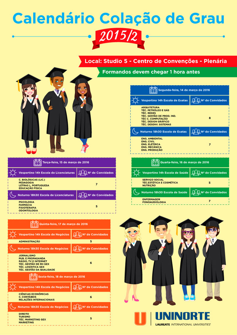 Confira abaixo o Calendário de Colação de Grau 2016.1: