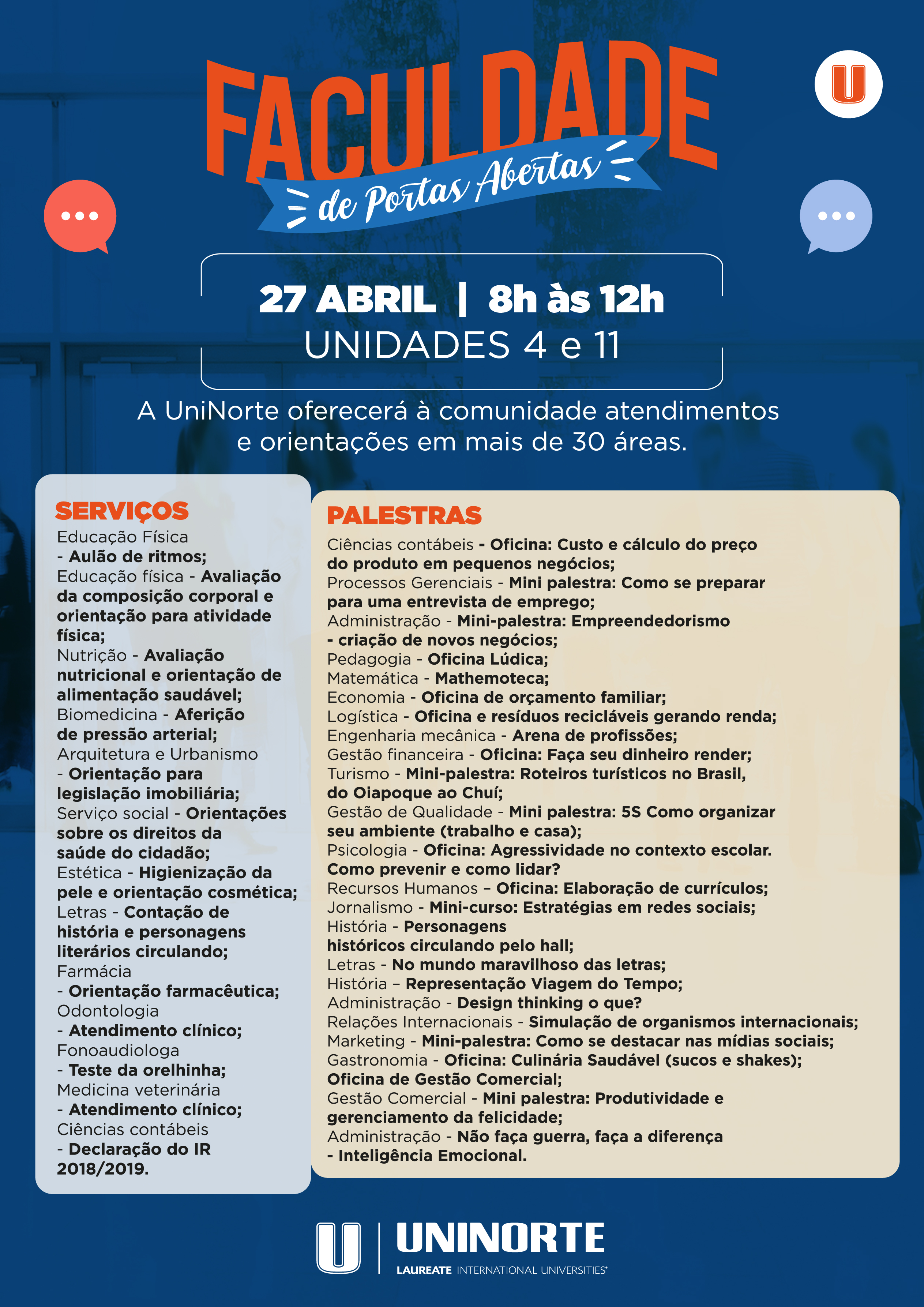 UniNorte promove “Faculdade de portas abertas” dia 27.04 com diversos serviços