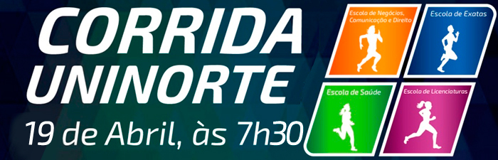A UniNorte voltou com tudo em 2015 e como parte do calendário de eventos, a instituição organizou a 1ª Corrida UniNorte. A atividade será no dia 19 de abril, às 7h30, com largada em frente à Unidade 6 e pretende reunir de forma divertida alunos, colaboradores e a sociedade em geral numa disputa saudável pelas ruas do centro da cidade.